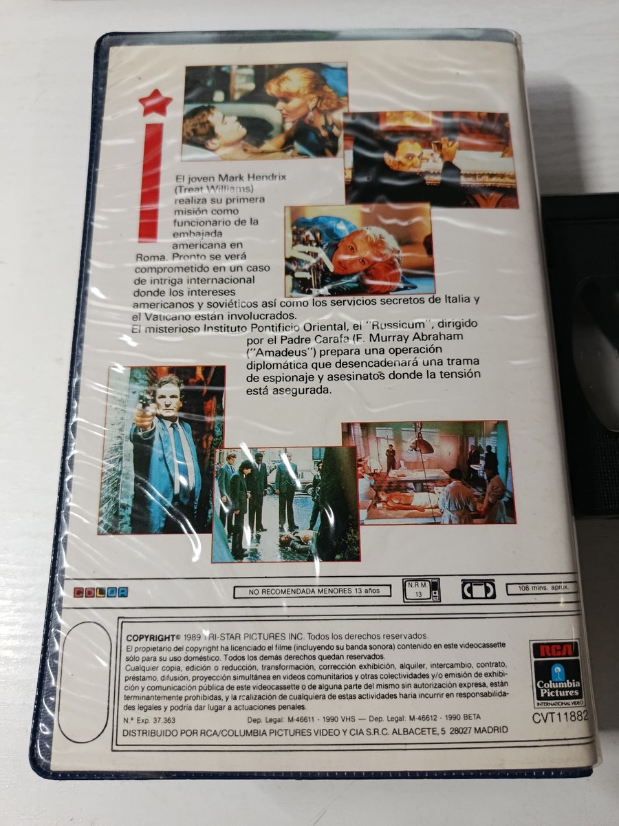 VHS, Russicum, Treat Williams, F. Murray Abraham, Danny Aiello, Rita Rusic, Rossano Brazzi, Pasquale Squitieri, RCA Columbia Pictures, TriStar Pictures, thriller politique, espionnage, Guerra froide, cinema italien, intrigue internationale, 1990, grande boîte, cassette video vintage, videotheque classique, film de , collection retro, edition espagnole, cinema des annees 80 Nous sommes en Espagne et nous proposons des articles soigneusement selectionnes: Vinyle, VHS, DVD, cassettes, livres et objets de. Nous accordons une attention particuliere a l'Etat, a la rarete et a la presentation. Nous sommes bases en Espagne et proposons des articles soigneusement organises: Records vinyles, bandes VHS, DVD, cassettes, livres et objets de collection. Nous prenons grand soin de l'etat des articles, d