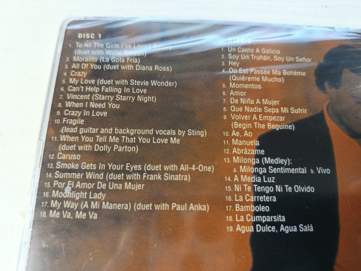 Original European edition de 2014 published by Columbia/ sony Music Entertainment dentro de The collection The Essential. doble CD con a careful selection delosgrandes international hitsde julio iglesias, including duets con Willie Nelson, Diana Ross , Stevie Wonder, Dolly Parton, Paul Anka, All-4-One and Frank Sinatra. It brings together 37 essential topics que your career in multiple languages.