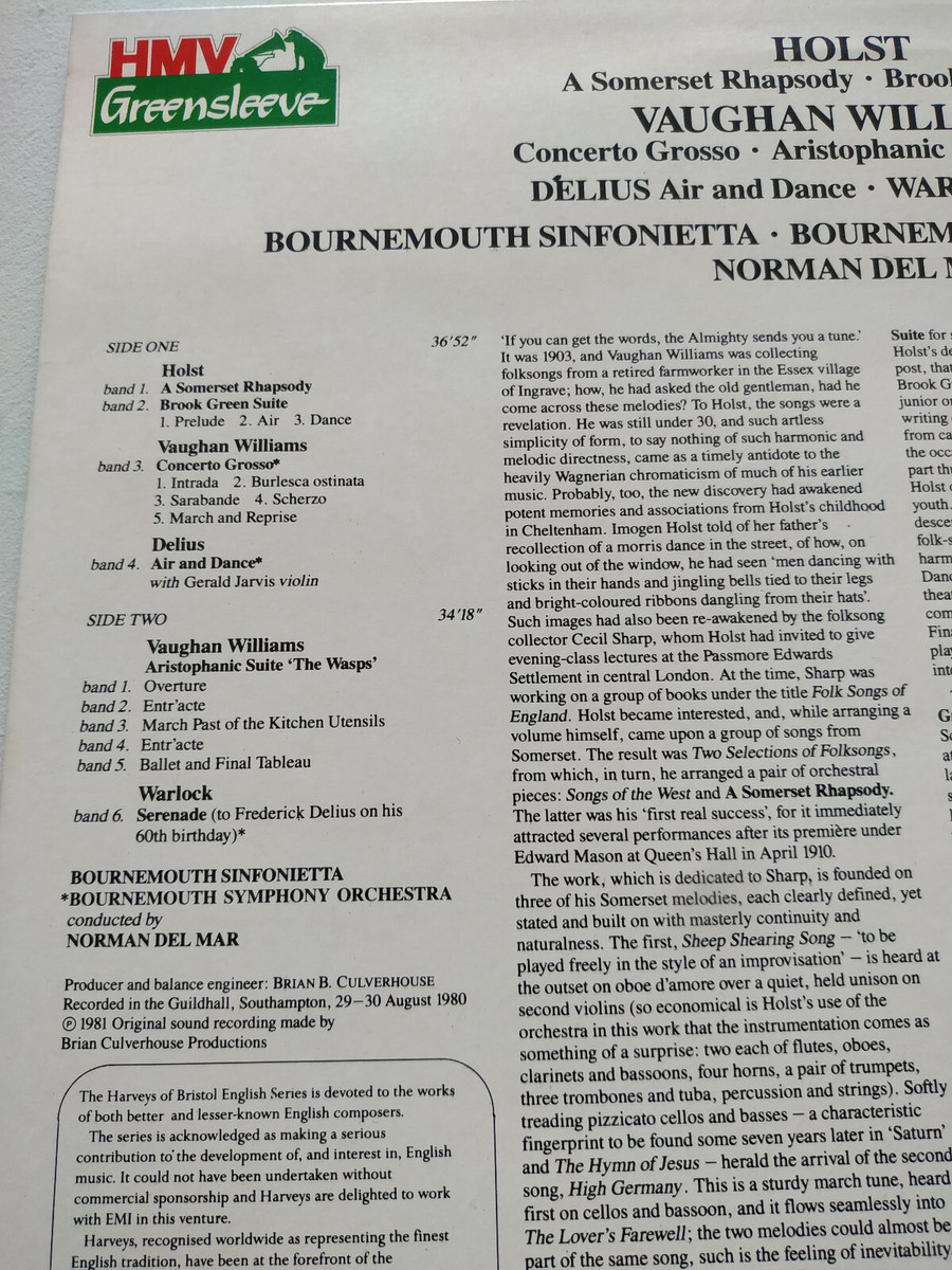 Holst Vaughan Williams Delius Norman del mar Ed 2912731 1987 LP 12 "vinyl Vg/vg