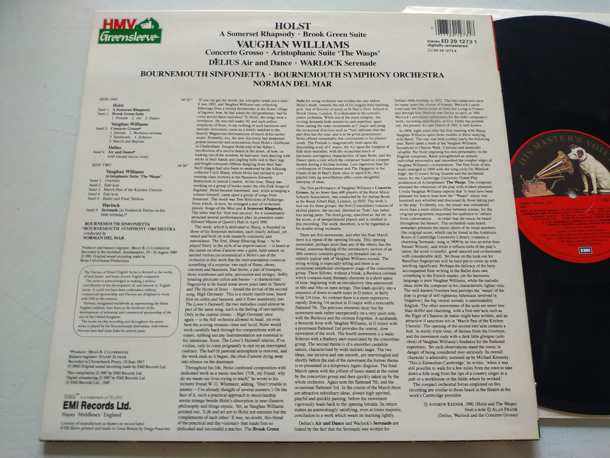 Holst Vaughan Williams Delius Norman Del Mar ED 2912731 1987 LP 12" Vinyl VG/VG