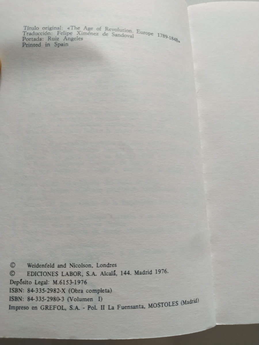 The Bourgeois Revolutions IEJ Hobsbawn Omega 1976 - Spanish BOOK