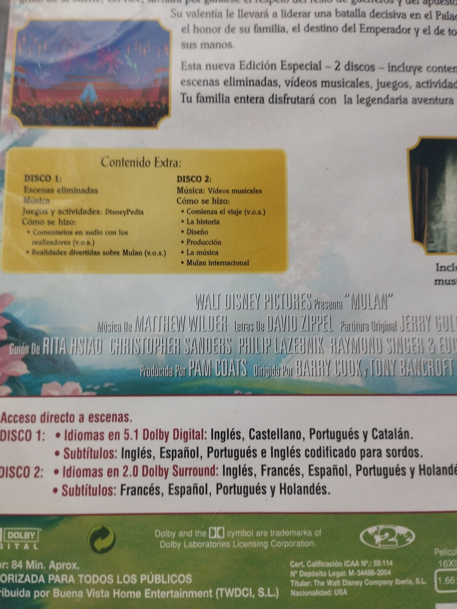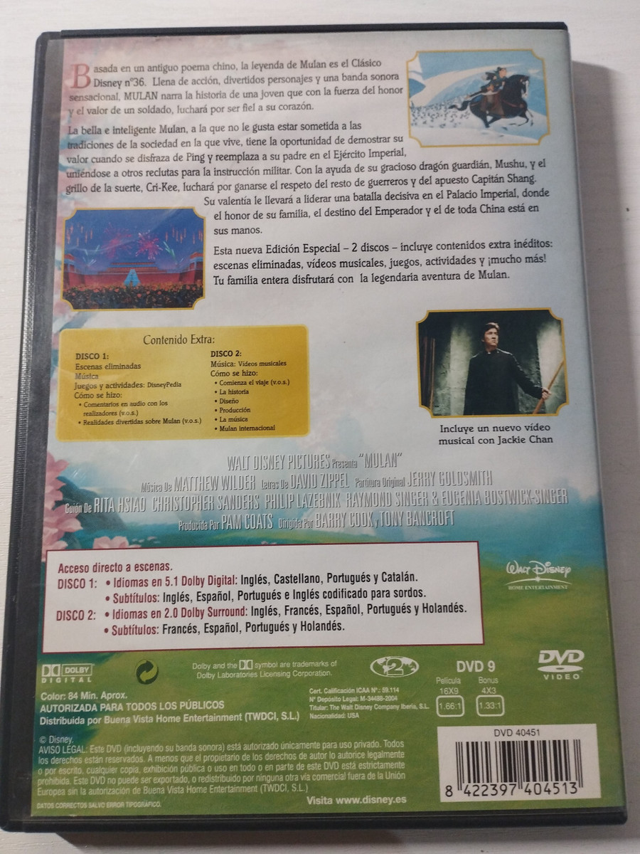 Mulan Special Edition Los Classics WALT DISNEY 2 X DVD Spanish English Reg 2 ESP