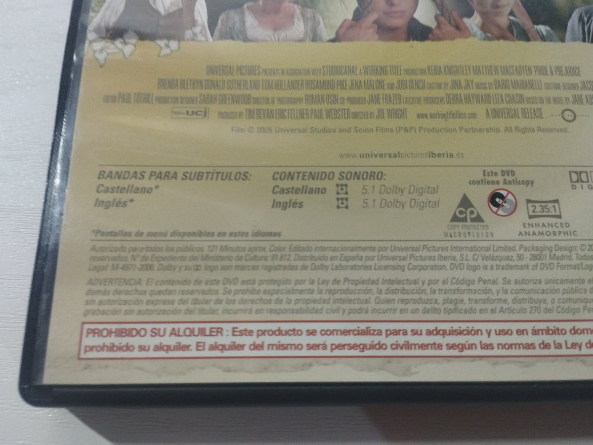 Pride Y Préjugés Keira Knightley Macfadyen - DVD Espagnol Anglais Région 2 Am