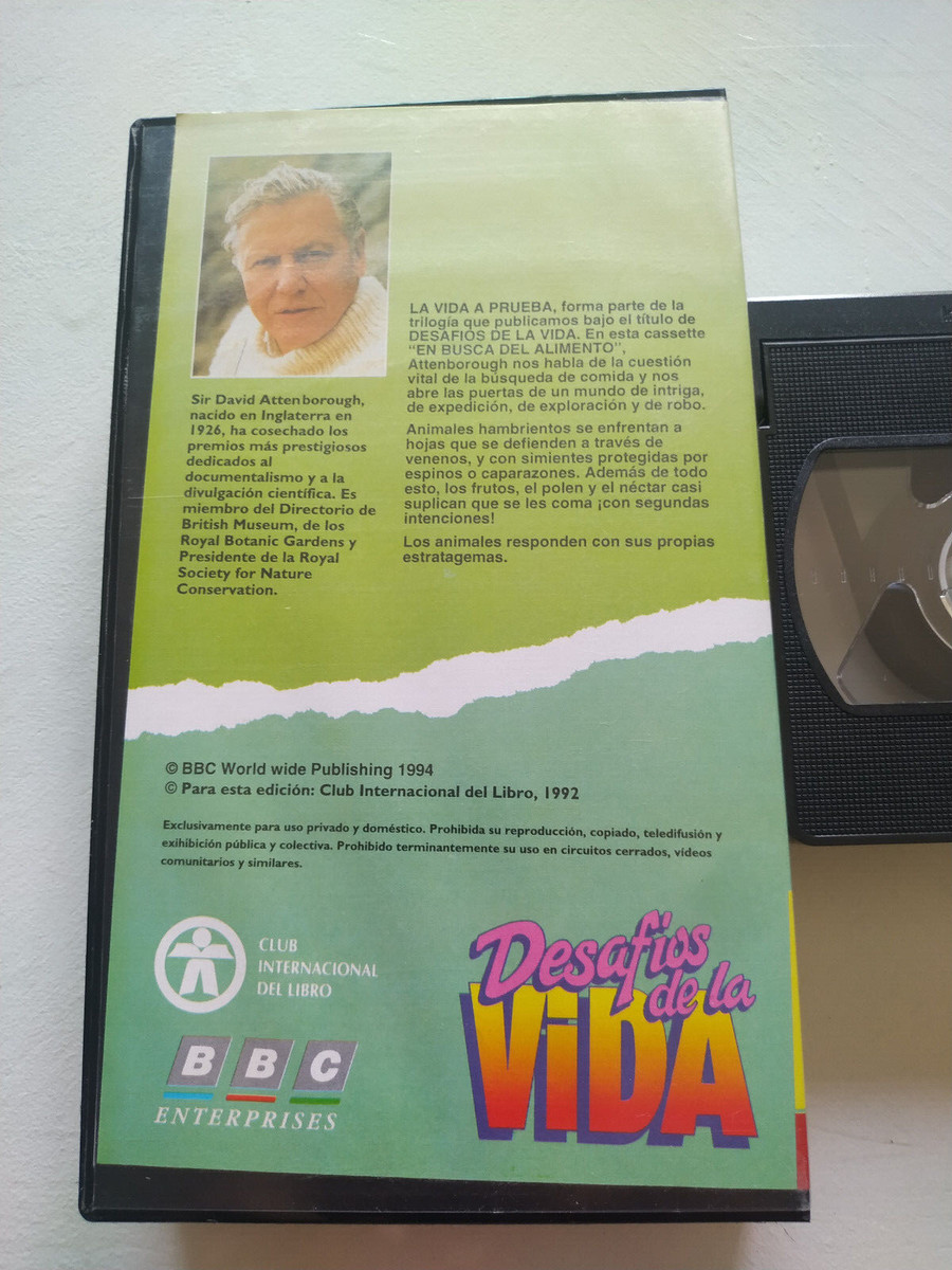 Sfida Vida alla ricerca de cibo BBC David Attenborough - VHS Spanish Tape