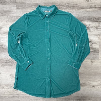 Soft Surroundings Velvet Boyfriend Tunic Shirt Womens Small Teal Green Button Up