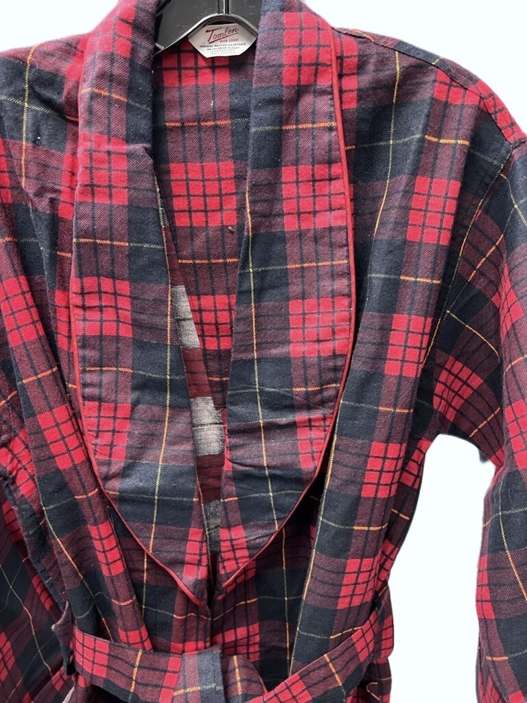 Tomlen Vintage Flannel Robe NWOT Plaid Belted Bath Dressing Men S/M Sanforized