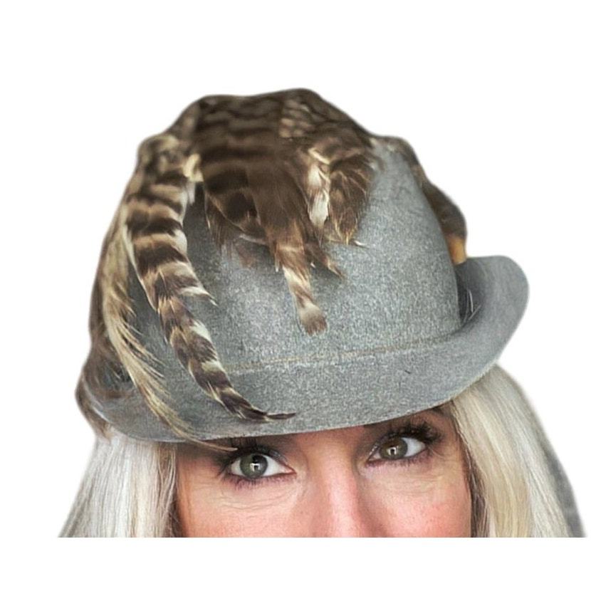 VTG 1930s Knox Gray Felt Cloche Pheasant Feather Sherlock 22