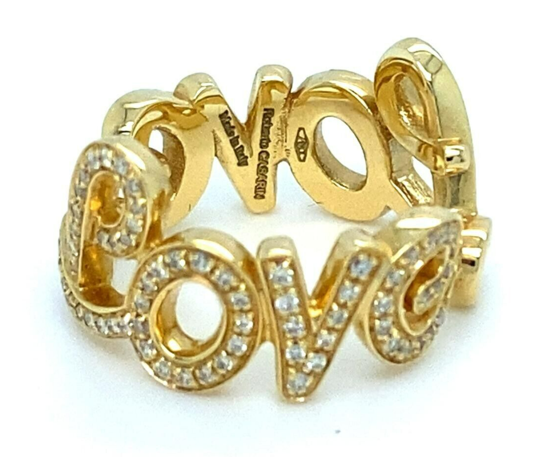 Beautiful Roberto Casarin 18k Yellow Gold and Diamond "Love" Ring Size 6.5 10g