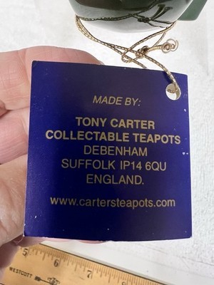 Tony Carter England Limited Edition Ornate Raised Relief Rose Books Poetry Lovers Teapot with original tag and bottom sticker measures approx. 12" long, 6" tall and 4 1/2" widest point. No damage or signs of use, bottom has original sticker and 1584/1999 as well as Tony Carter Made in England, handle has original hang tag. See pictures. You will need sign for this at delivery
