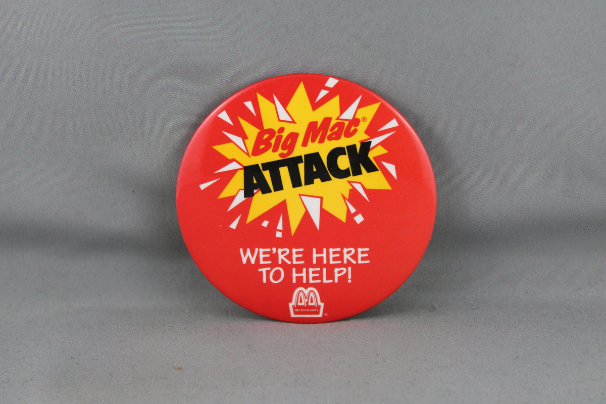 Up for sale is a vintage McDonald's pin. It has a red base colour with Big Mac attack, we are here to help screened on. What a great pin do not miss out on it.