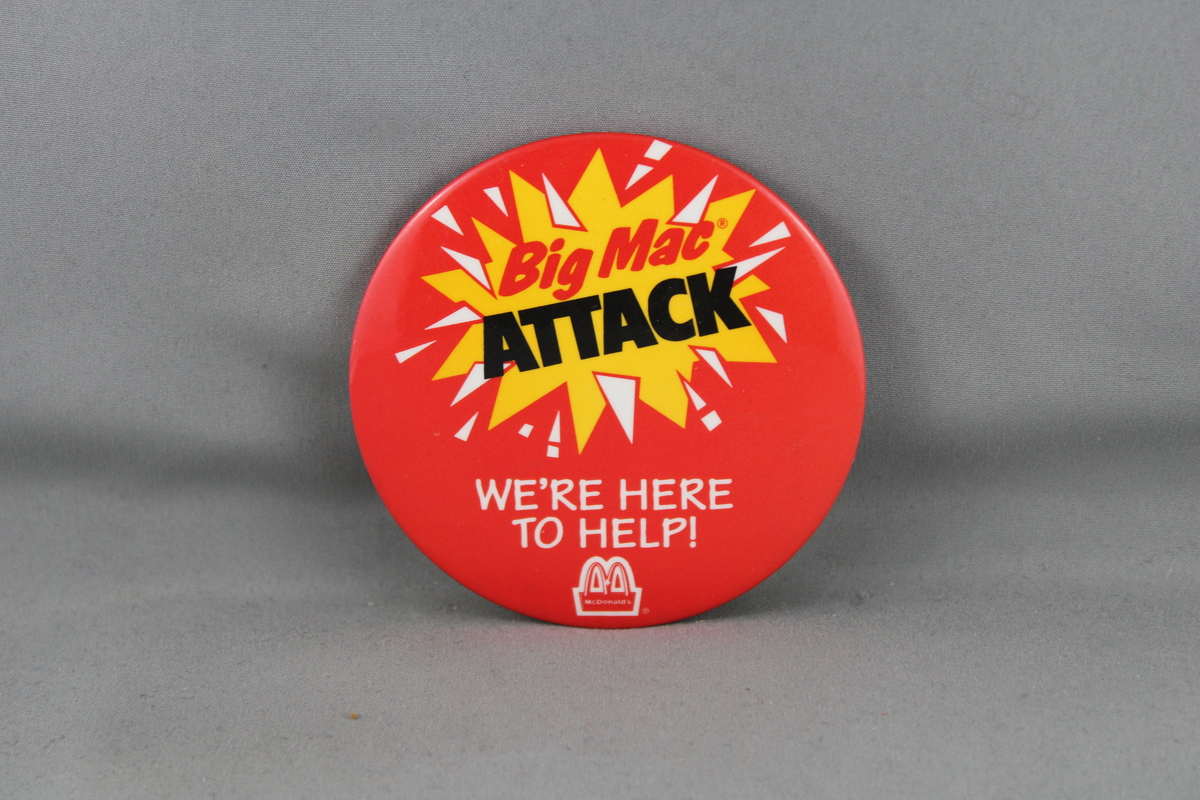Vintage McDonalds Pin - Big Mac Attack We're Here to Help - Celluloid Pin