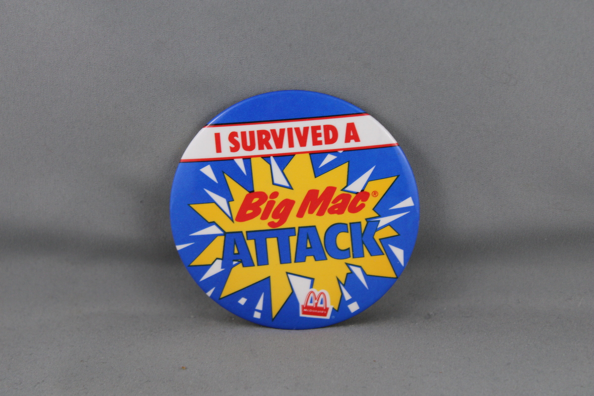 Vintage McDonalds Pin - I Survived a Big Mac Attack - Celluloid Pin