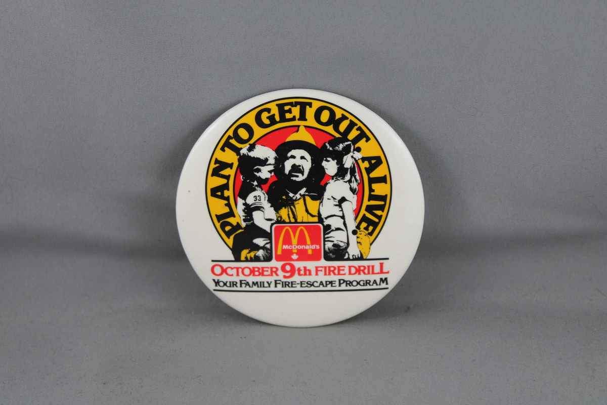 Vintage McDonalds Pin - Fire Safety Plan to Get out Alive - Celluloid Pin