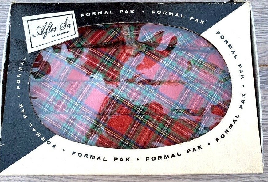 After Six by Rudofker VTG Red Tartan Plaid Bow Tie & Cummerbund Formal Pack 50s