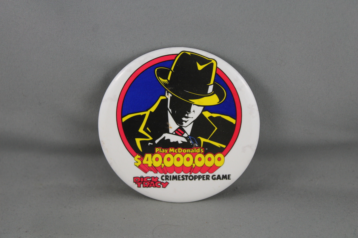 Vintage McDonalds Pin - Dick Tracey 40 Million Crimestopper Game - Celluloid Pin
