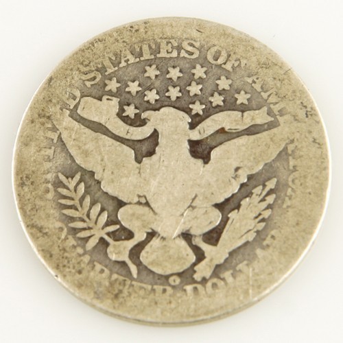 1901-O BARBER QUARTER 25 CENT COIN ABOUT GOOD AG CONDITION OBVERSE IS GOOD WITH FULL FOUR DIGIT DATE REVERSE IS WORN IN RIM CALIFORNIA BUYERS: 9 % SALES TAX WILL BE ADDED INSURANCE DELIVERY CONFIRMATION OR SIGNATURE CONFIRMATION Please call us with any Inquiries: Continental Coin and Jewelry Company Web Department: Monday thru Friday, from 10:30am-6pm (818-781-4232) Reference Item # QUA-1031 on multiple purchases. would not be combined. We appreciate your understanding.