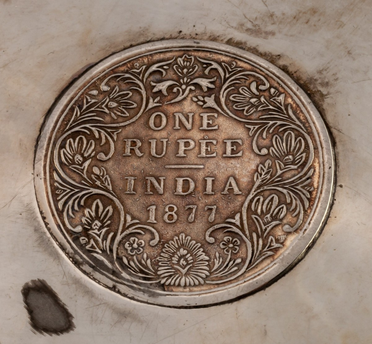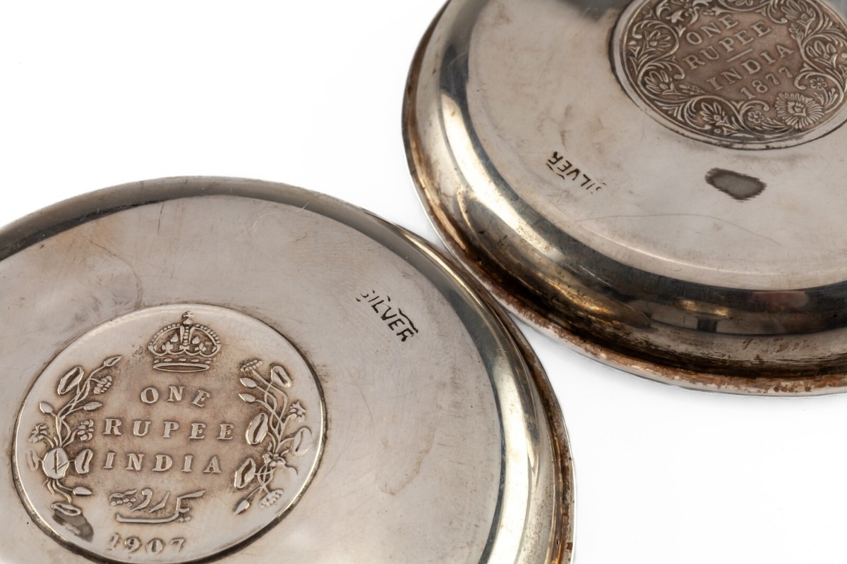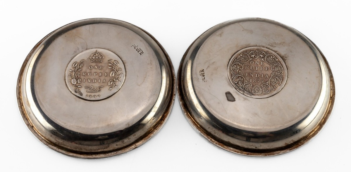 Pair Indian Silver Dishes, 1877 1907 One Rupee Coin