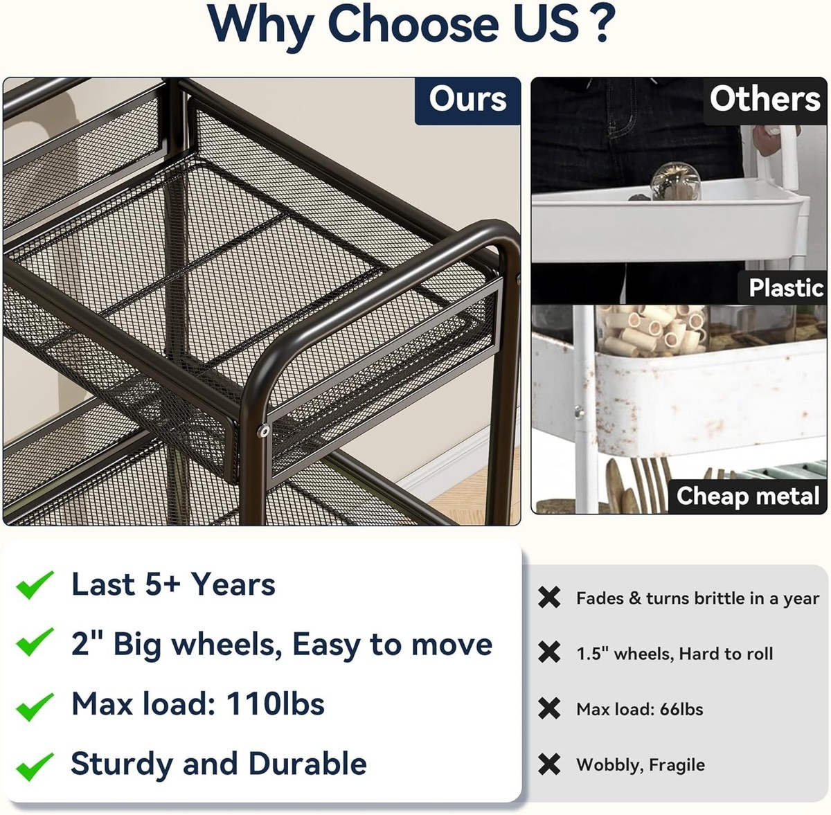 Durable 3-Tier Rolling Cart for Home & and 50 similar items