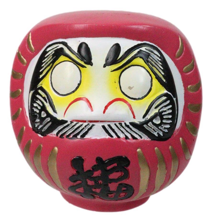 ? This Auspicious Daruma Figurine With Unpainted Eyes is made of designer composite resin, hand painted and polished individually.