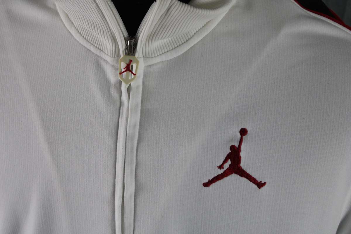 Air Jordan Track Jacket - White with Black and Red Trim - Men's Medium