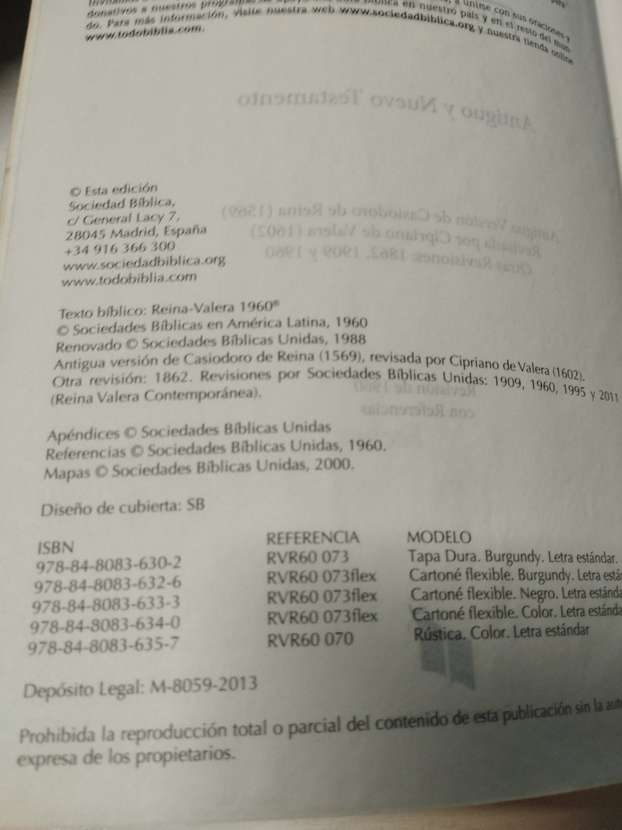 SANTA Bible Reine Valera Revision 1960 Société Biblique 2013 - Livre Espagnol