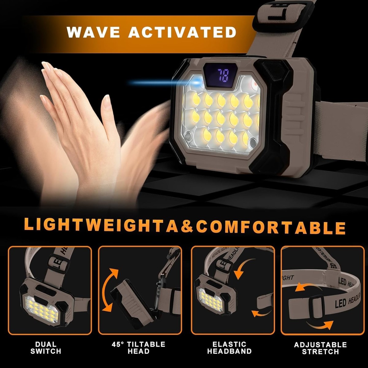 Versatile Waterproof Headlamp - 5 Light Modes & USB Rechargeable for Outdoor Use