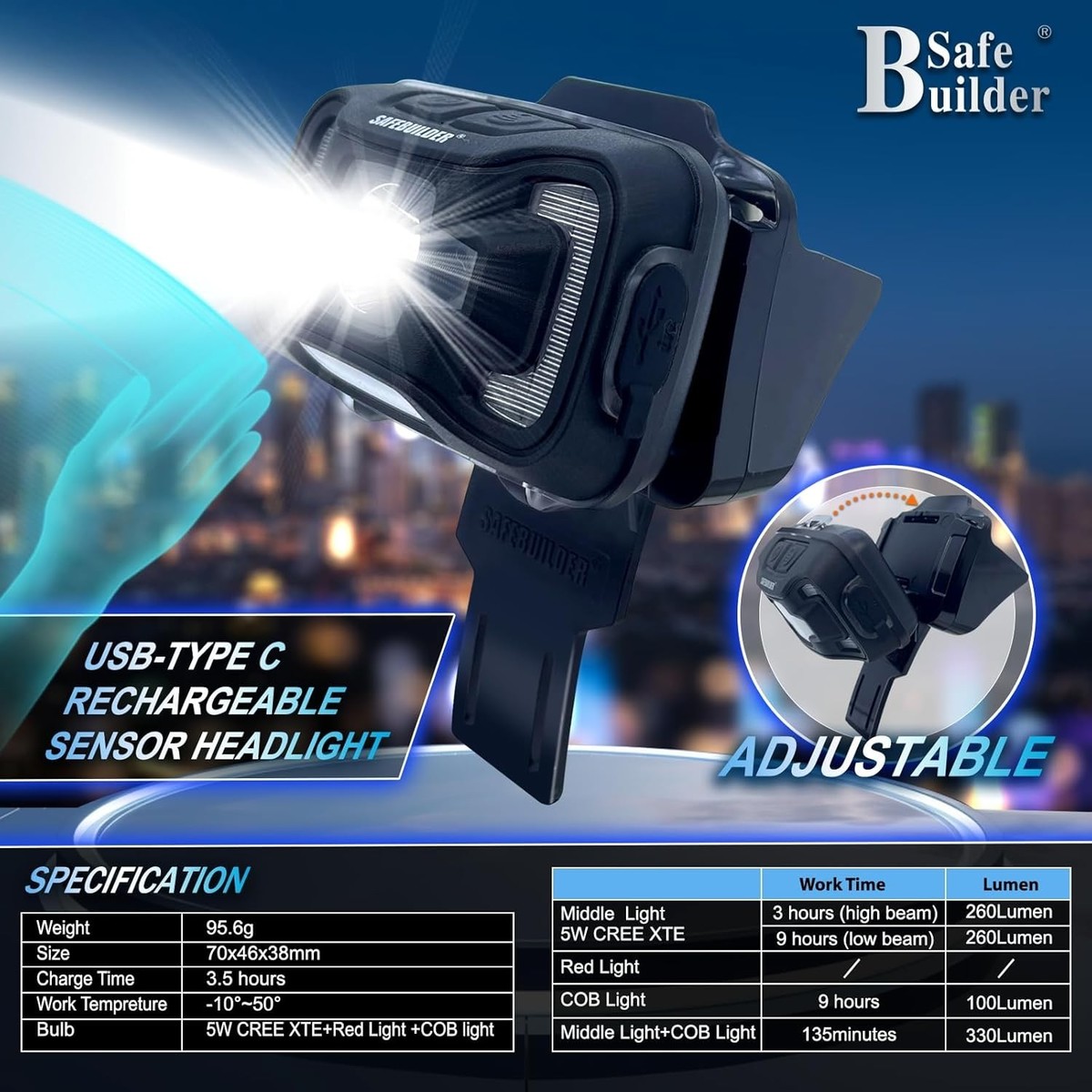 ? Humanized Design: The thoughtfully designed hard hat incorporates adjustable devices for the headlamp and eye protection visor, ensuring a snug fit tailored to the unique contours of each worker?s head for enhanced comfort and stability.
