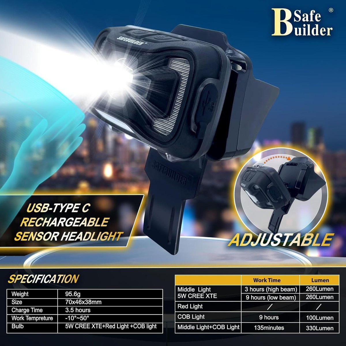 Humanized Design: Tailored to fit the contours of your head with multiple adjusting devices, our integrated headlamp enhances comfort and stability, allowing for more productive work sessions.