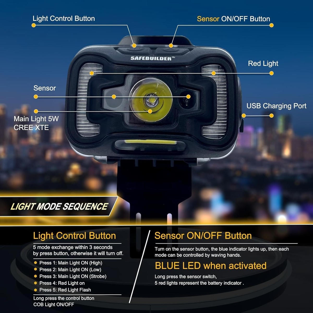 Versatile Hard Hat with Integrated Headlamp - Ideal for Outdoor Work Safety