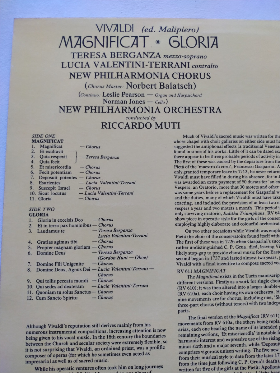 Vivaldi ASD 3418 Magnificat Gloria Muti Berganza 1977 - LP 12 " Vinilo VG/VG