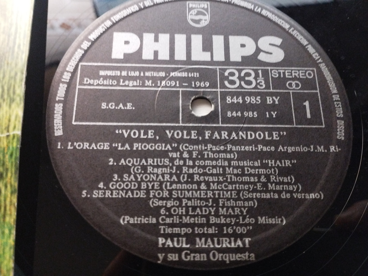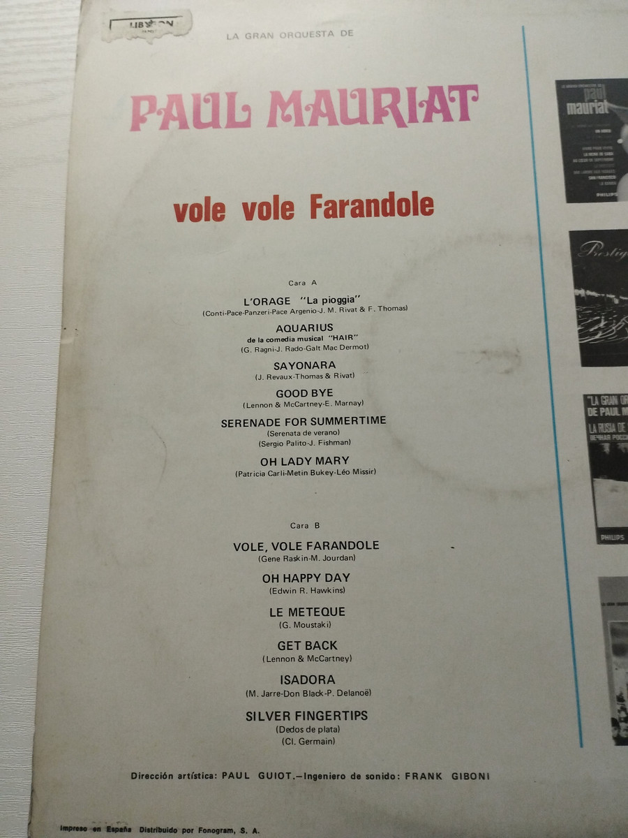 Paul Mauriat la tua vicola Orquesta Vole Farando Philips 1969 - LP Vinilo 12 "G+/VG