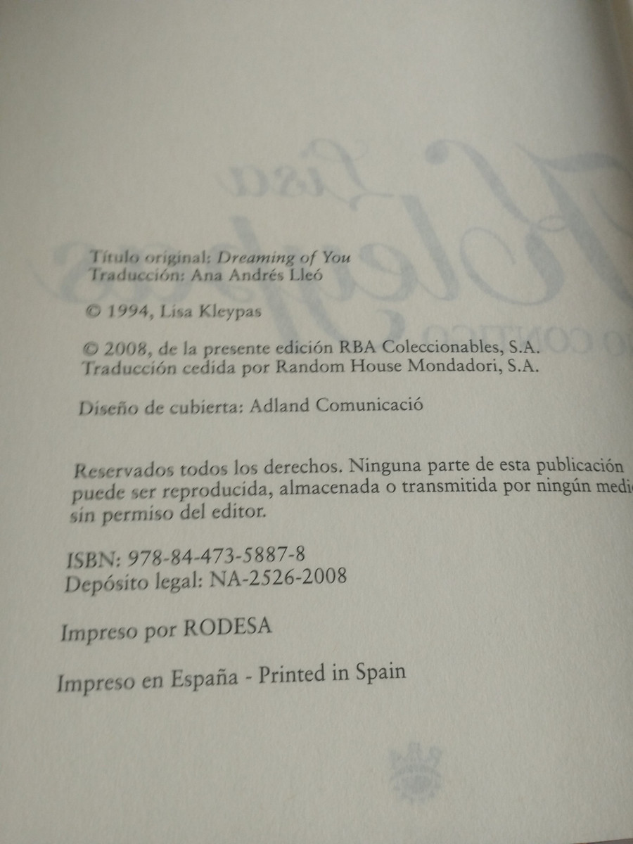 Ti sogno Lisa Kleypas RBA 2008 Romantica - LIBRO Spanish Am