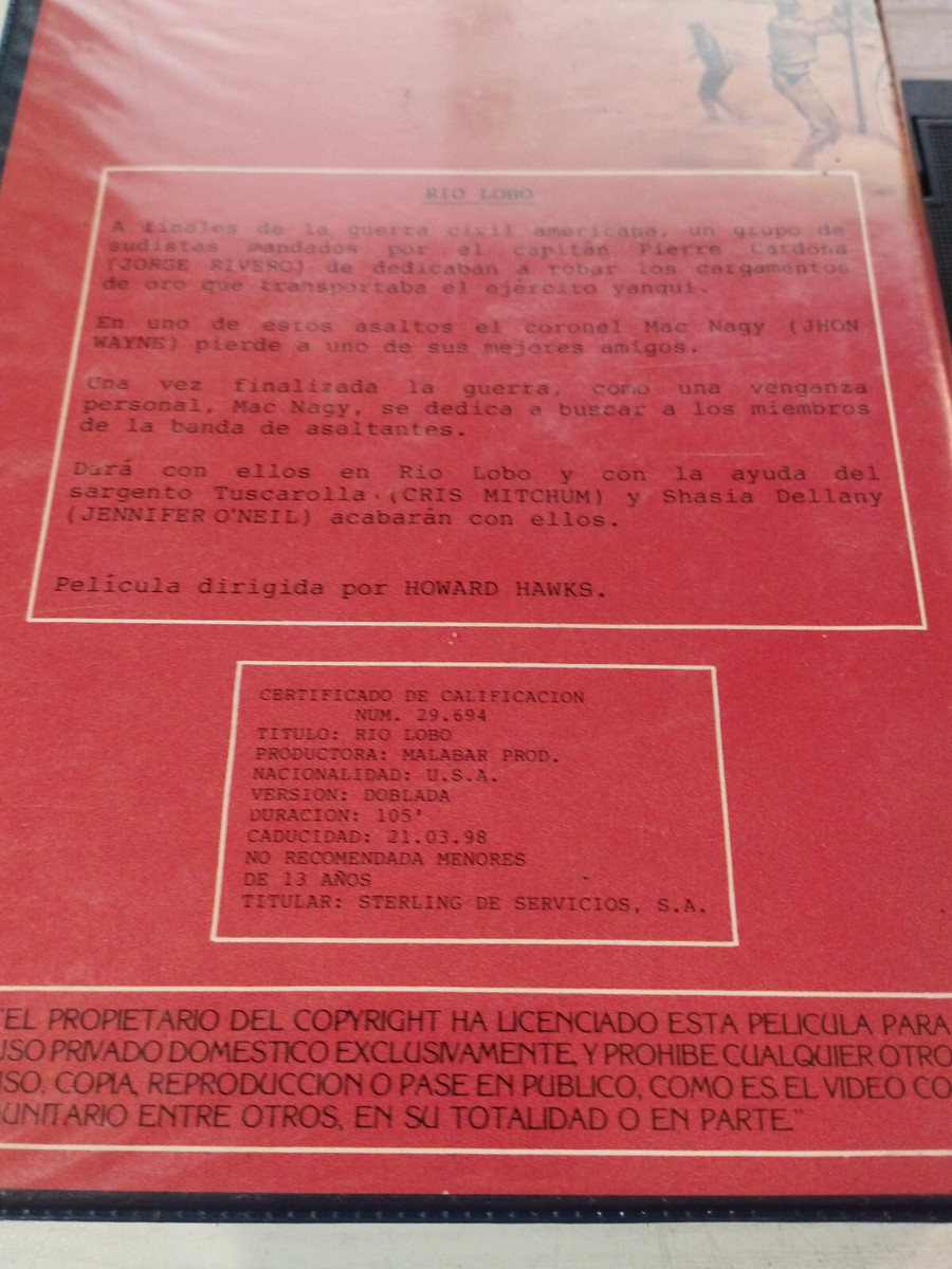 Rio lobo John Wayne Howard Hawks Western 1998 - VHS Cassetta Original Spagnolo