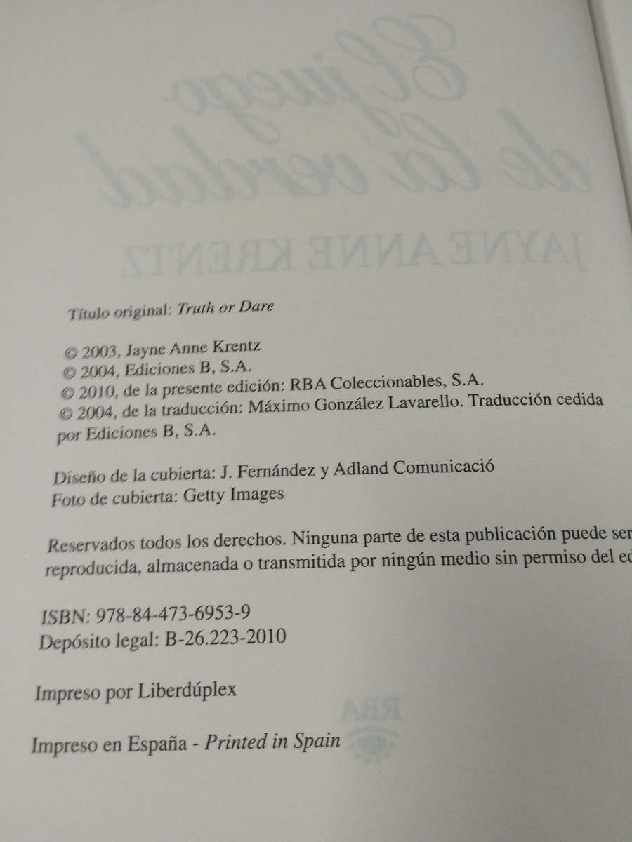 El Juego de la verite Jayne Ann Krentz Romantica RBA 2010 - LIVRE Espagnol Am