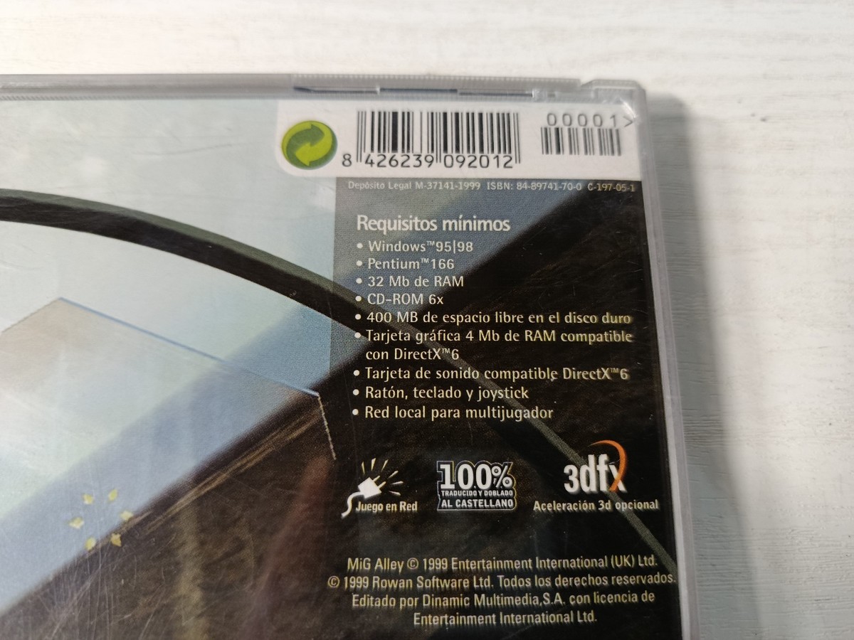 MiG Alley es unodelos les simulateurs aeriens les plus ambitieuxde finalesdelos annees 90. Developpe par Rowan Software, il se demarque par sa profondeur tactique et son approche realiste du combat aerien pendant la Guerra de . Un titre tres apprecie des fans de simulation de et aujourd'hui particulierement interessant como piecede collectede PC classique et representatifde l'agedoradadelos simulateurs militaires. Nous sommes en Espagne et nous proposons des articles soigneusement selectionnes: Vinyle, VHS, DVD, cassettes, livres et objets de. Nous accordons une attention particuliere a l'Etat, a la rarete et a la presentation. Nous sommes bases en Espagne et proposons des articles soigneusement organises: Records vinyles, bandes VHS, DVD, cassettes, livres et objets de collection. Nous pr