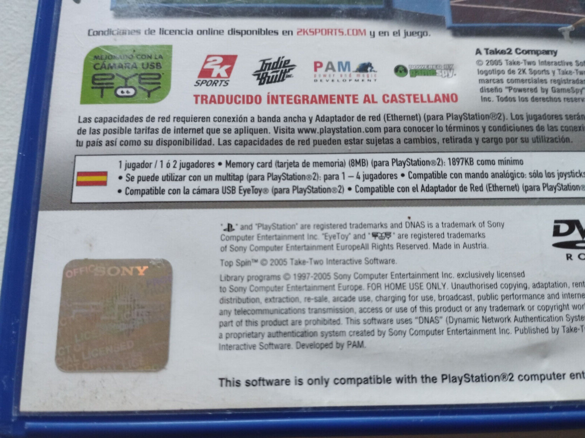 Top Spin Tennis 2K Sports - Juego per PlayStation 2para Ps2 spagnolo