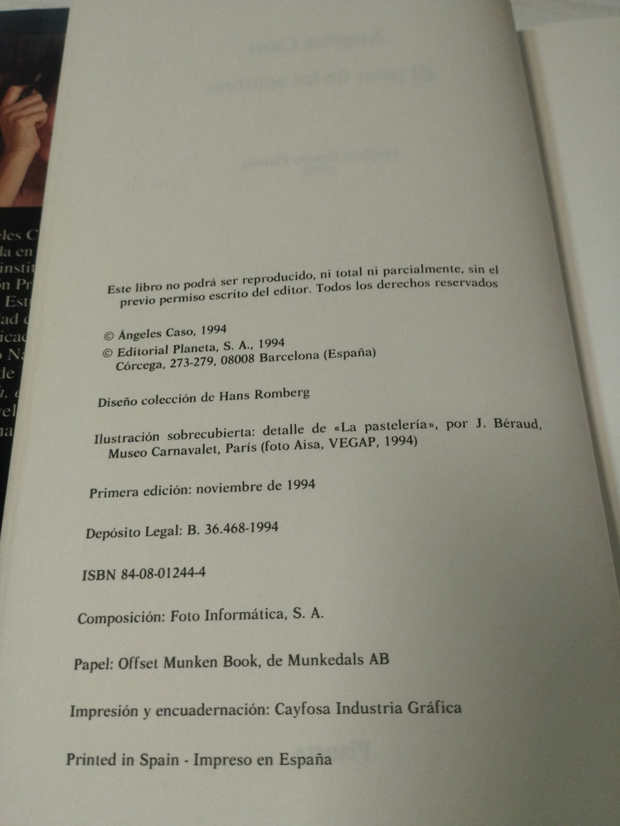 El Il peso de Sombras Angeles Planeta Case 1994 - LIBRO spagnolo
