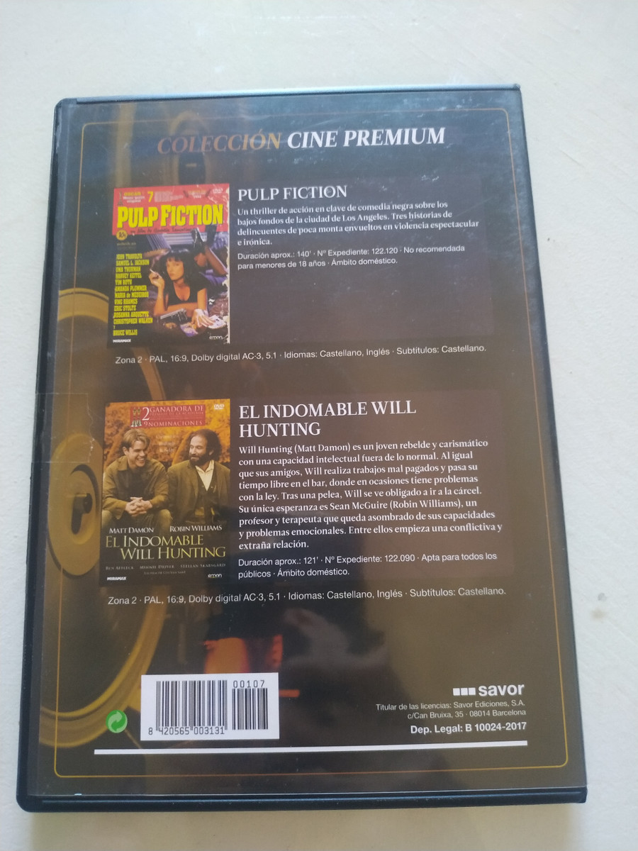 Pulp Fiction + el Will Hunting Tarantino - DVD Spanish English Region 2
