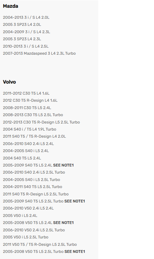 2005-2009 S40 T5 L5 2.4L SEE NOTE1
