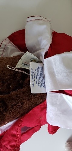 The Build-A-Bear Marvelous Monkey Plush is an 18" stuffed ape in brown color, featuring black eyes. This retired plush toy from the Build-A-Bear Workshop franchise includes clothing items and is perfect for all occasions. Made of plush material, this monkey stuffed animal is an original and one-of-a-kind piece, adding a unique touch to any collection of bears and dolls.