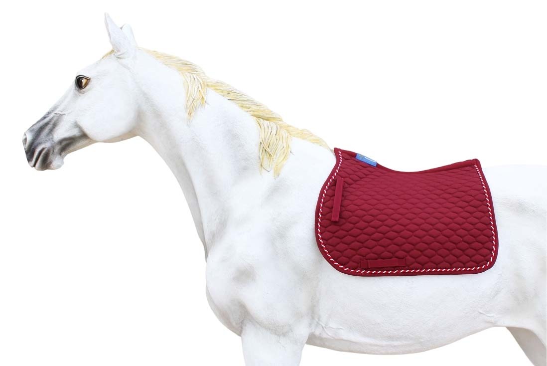 Challenger classic contoured all-purpose English saddle pad. Made from heavy-duty cotton twill quilted pattern upper and soft cotton underside. Beautifully accented with a two-tone braided trim. Nylon girth loops and Velcro billet straps to prevent tack from shifting. Pad measures 23" (Spine) x 21" (Drop).