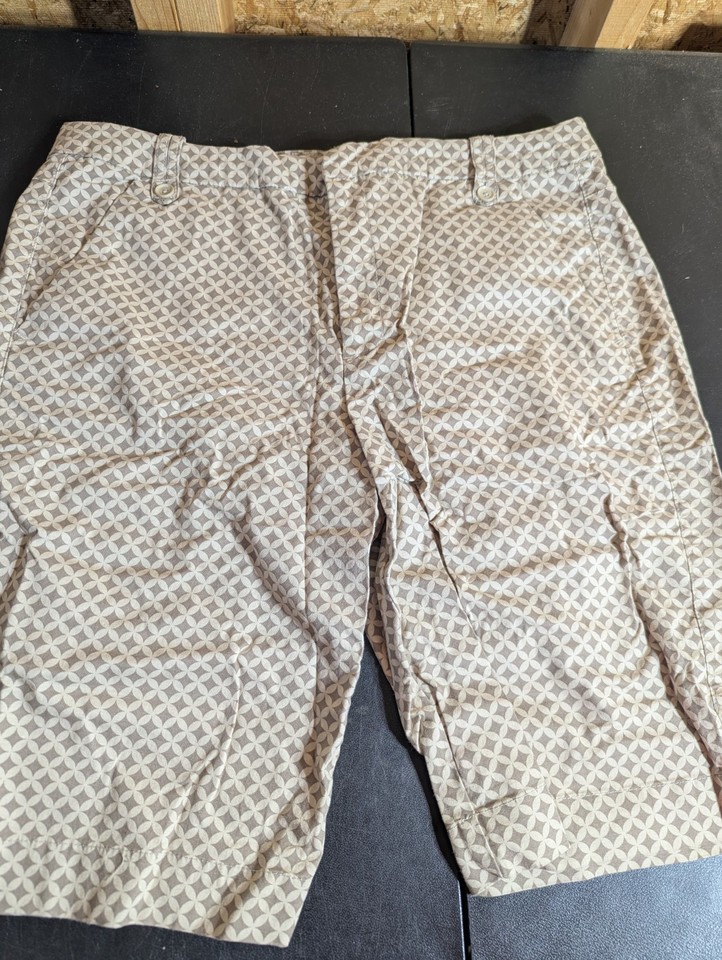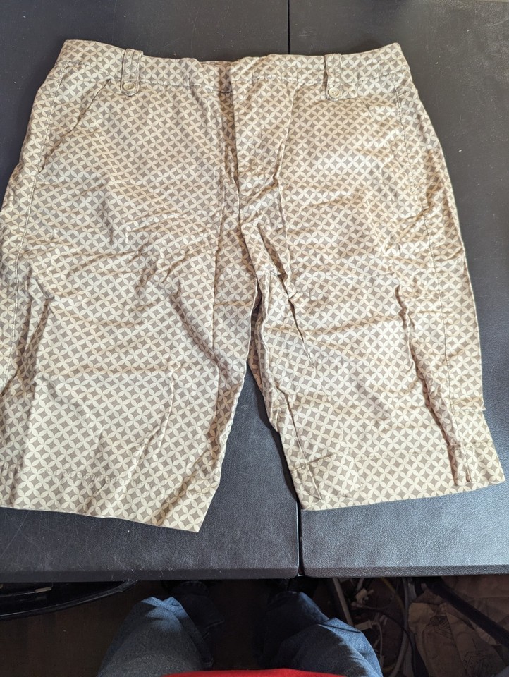 Gloria Vanderbilt Size 16 Cotton Blend Tan Shorts With Diamond Pattern