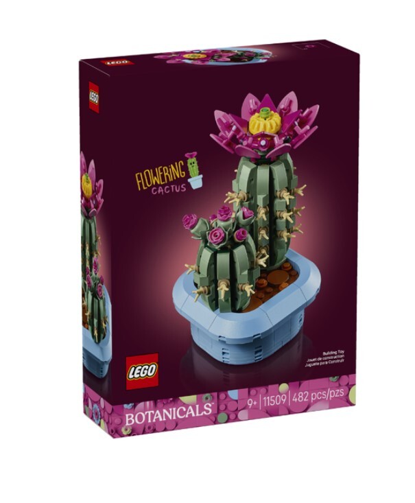 Delight young plant lovers with the LEGO Botanicals Flowering Cactus (11509) building set for kids ages 9 and up. Packed with details, it lets girls and boys have fun creating cool cactus decor. Kids will feel their creativity flourish as they build 2 cacti models. The larger LEGO cactus is in full bloom and features a pink flower with a yellow center on top, while the smaller LEGO cactus features pink buds in various stages of growth. The cacti are an authentic shade of green and are both displayed in a pastel blue plant pot, making it easy for kids to show them off as bedroom or home decor once theyโve finished building. A great gift for girls and boys on birthdays and other special occasions, as well as a gift for nature lovers of all ages, this LEGO Botanicals building set is available in the LEGO Builder app, where kids can zoom and rotate their builds and track their progress. Set contains 482 pieces.