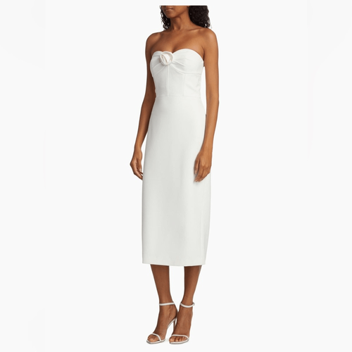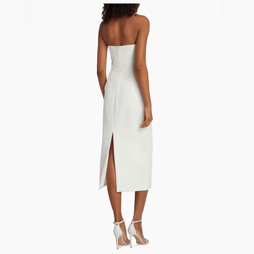 Monique Lhuillier Leonor Strapless Crepe Midi Dress, Size 12, White, NWT