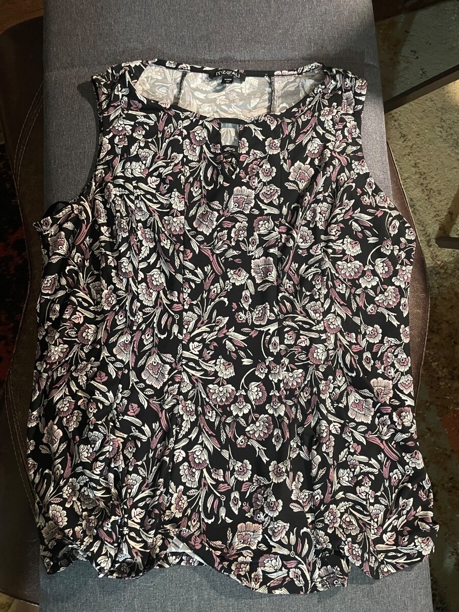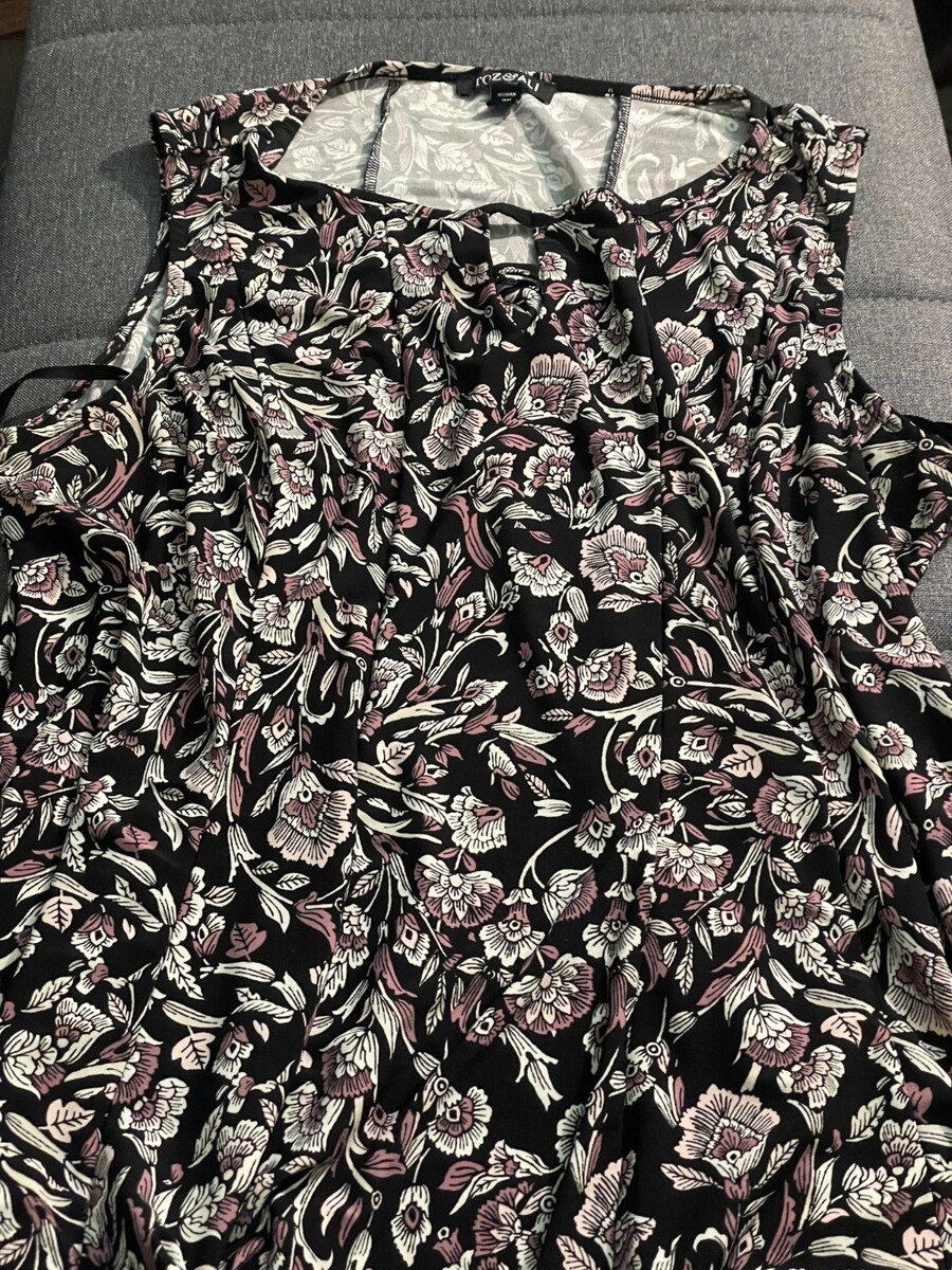 Roz & Ali Women’s 2X Black Floral Sleeveless Blouse Split Neck Career Top