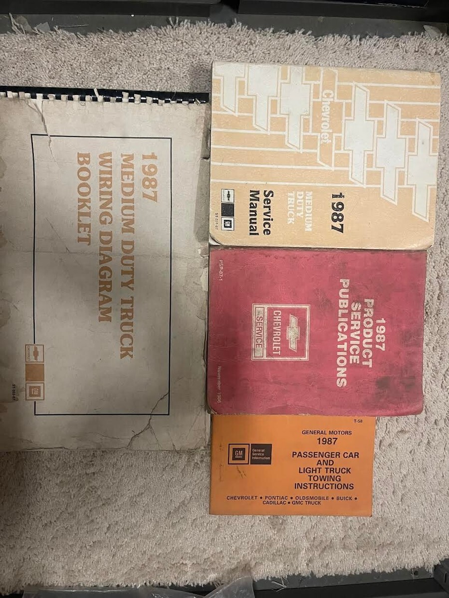 Manuale di servizio per camion di medie dimensioni GM Chevy del 1987 usato, manuale dello schema elettrico, manuale di traino e manuale delle pubblicazioni di assistenza del prodotto.