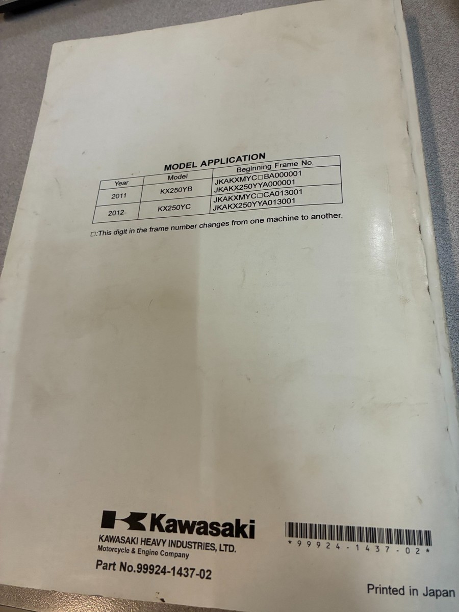 Manuale Di Riparazione Servizio OEM Kawasaki KX250F 2011 2012 99924-1437-02