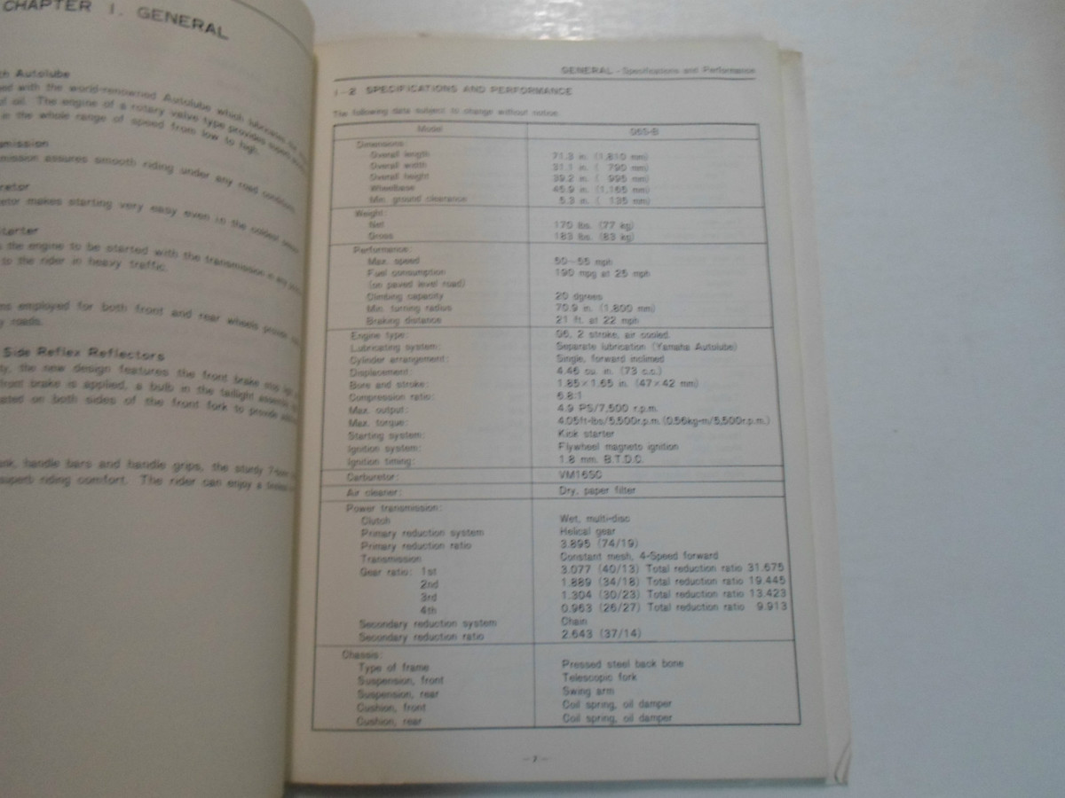 MANUALE DI OFFICINA RIPARAZIONE SERVIZIO YAMAHA G6S-B 1971