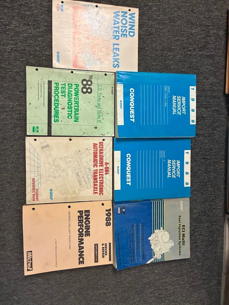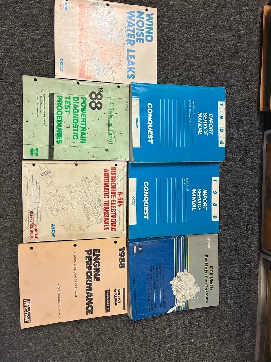 Manuale di servizio Chrysler Conquest di fabbrica del 1988, set di 2 volumi, manuali diagnostici, manuale Mitchell e manuale di formazione
