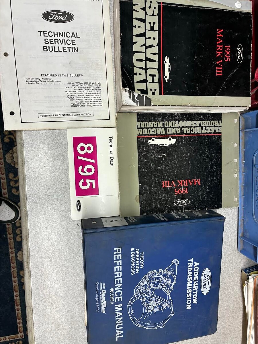 FACTORY 1995 Lincoln Mark VIII Manuale di servizio, manuale per la risoluzione dei problemi elettrici e del vuoto, manuale di riferimento della trasmissione, libretto dei dati tecnici e bollettino di servizio tecnico